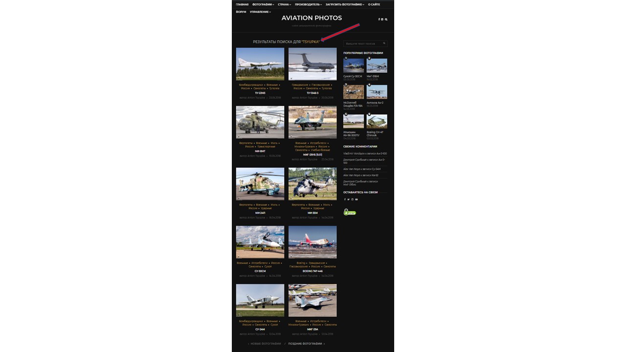 Шаг 1: Кликнуть на имя автора на странице с фотографией Шаг 2: Откроется профиль автора. Кликнуть на Таб "Записи" Шаг 3: Любоваться фотографиями Вариант второй - через поиск